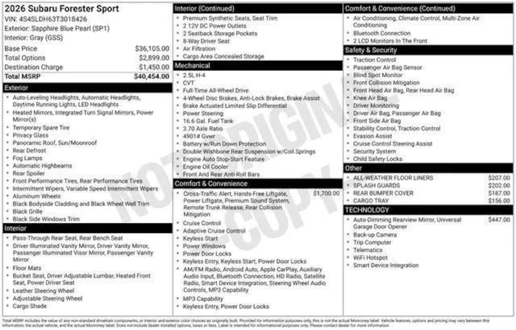 You'll appreciate its safety and convenience features! Subaru prioritized comfort and style by including: a trip computer, heated seats, and remote keyless entry. Under the hood you'll find a 4 cylinder engine with more than 170 horsepower, and for added security, dynamic Stability Control supplements the drivetrain.